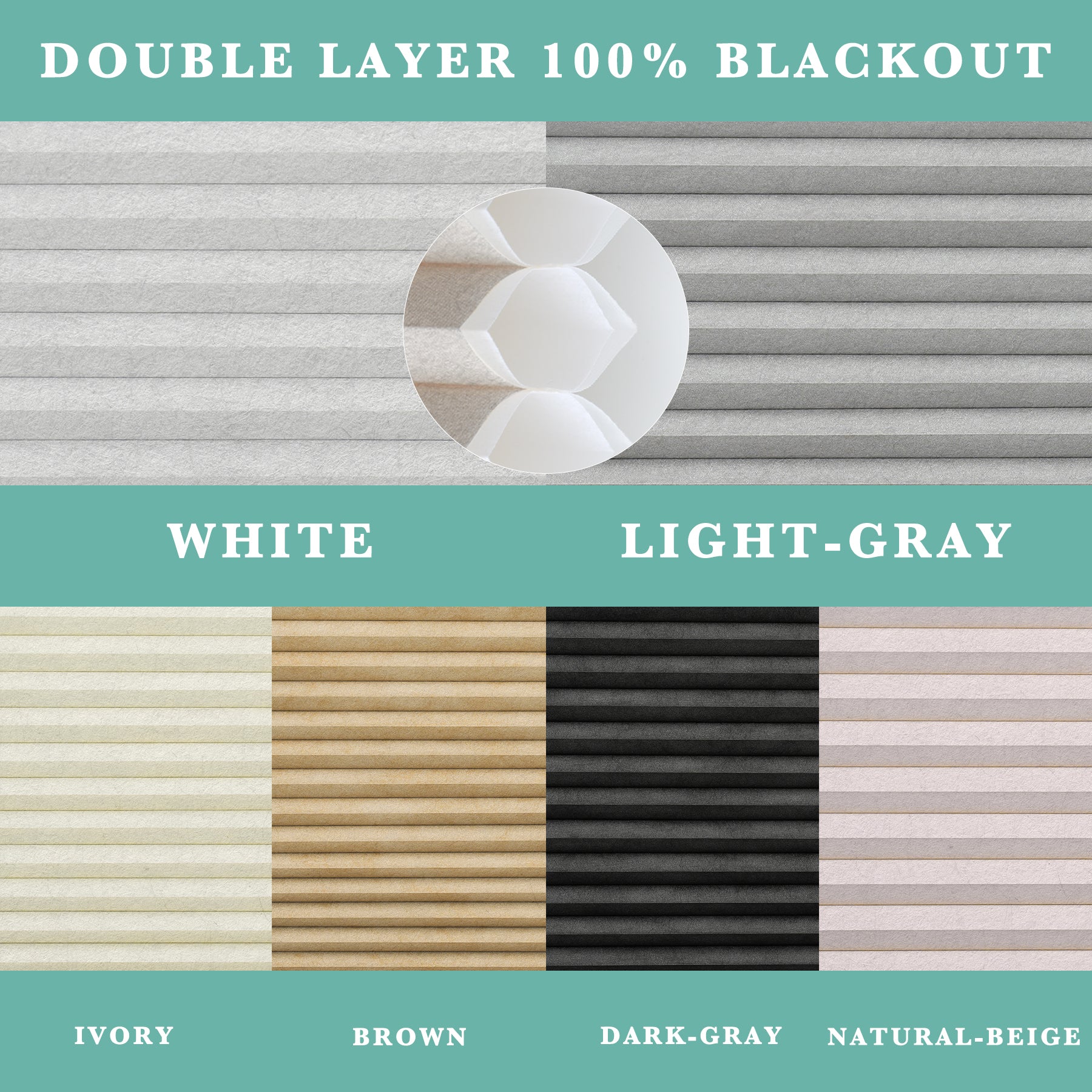 Double-Layer 100% Blackout Whimsy Cellular Shades: Enhanced insulation and sound absorption with a dual-layer build, offering full blackout and superior energy efficiency