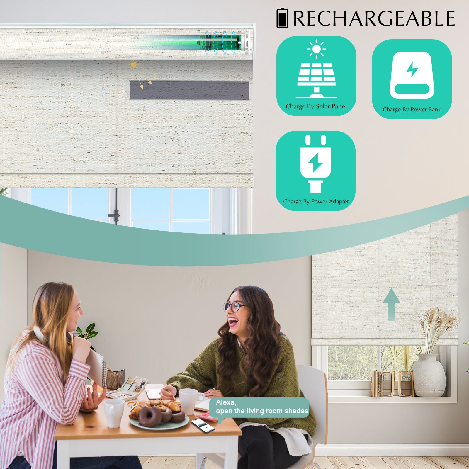 Control your smart blinds using your voice through your smart home assistant. Make your interior come to life with simple voice commands.