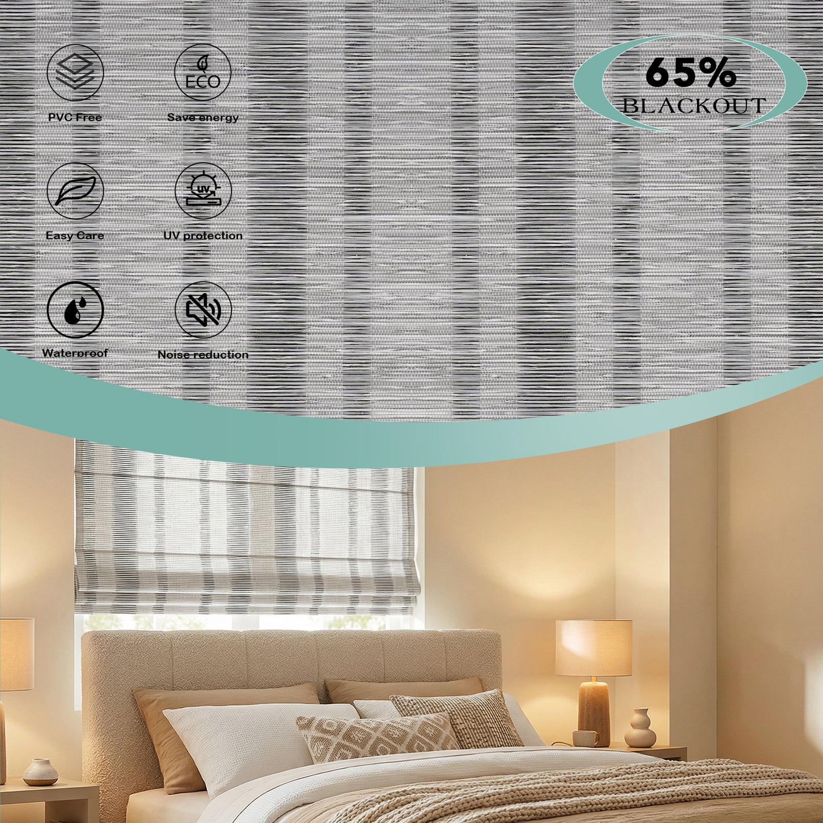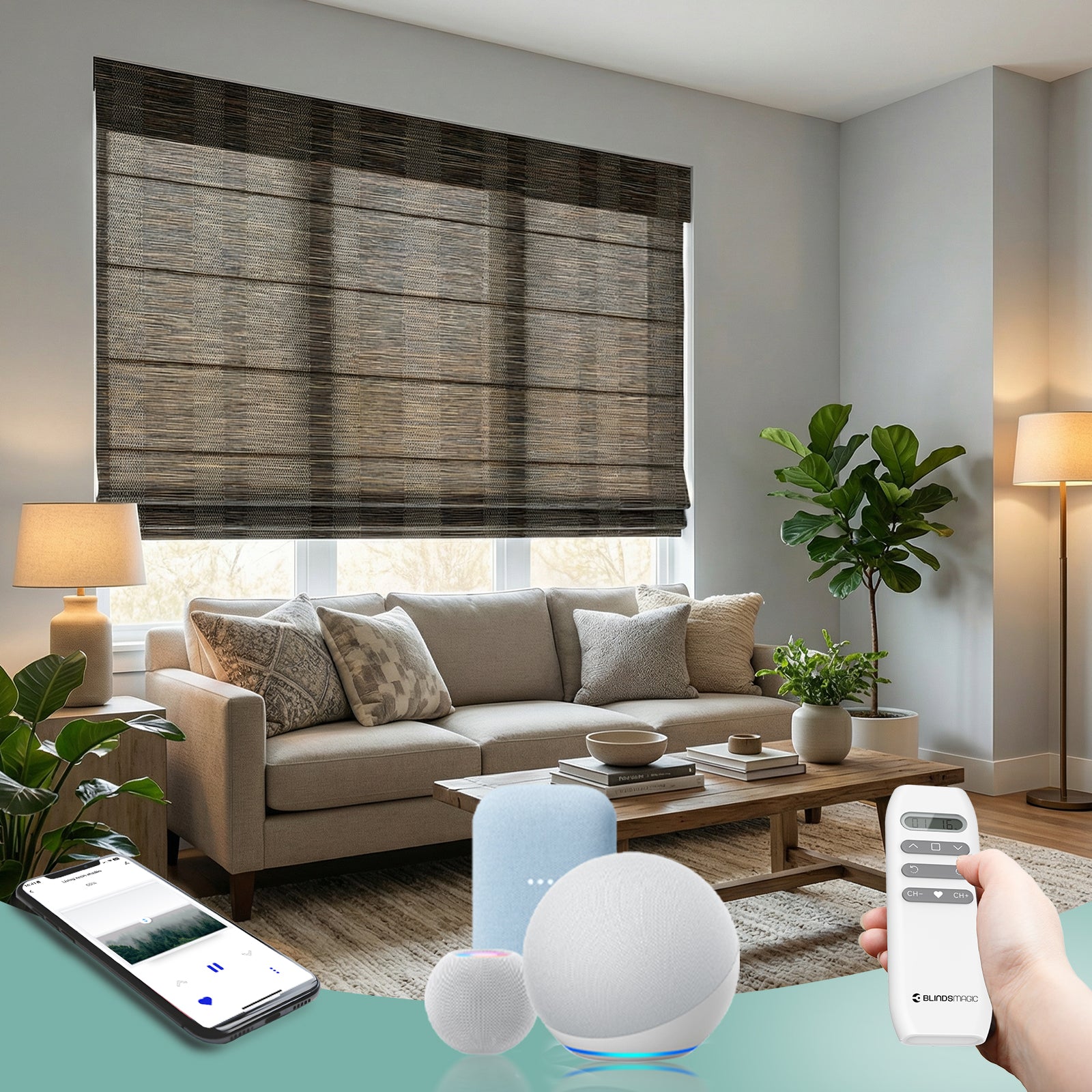 BlindsMagic Smart Motorized Roman Shades 65% Blackout Woven