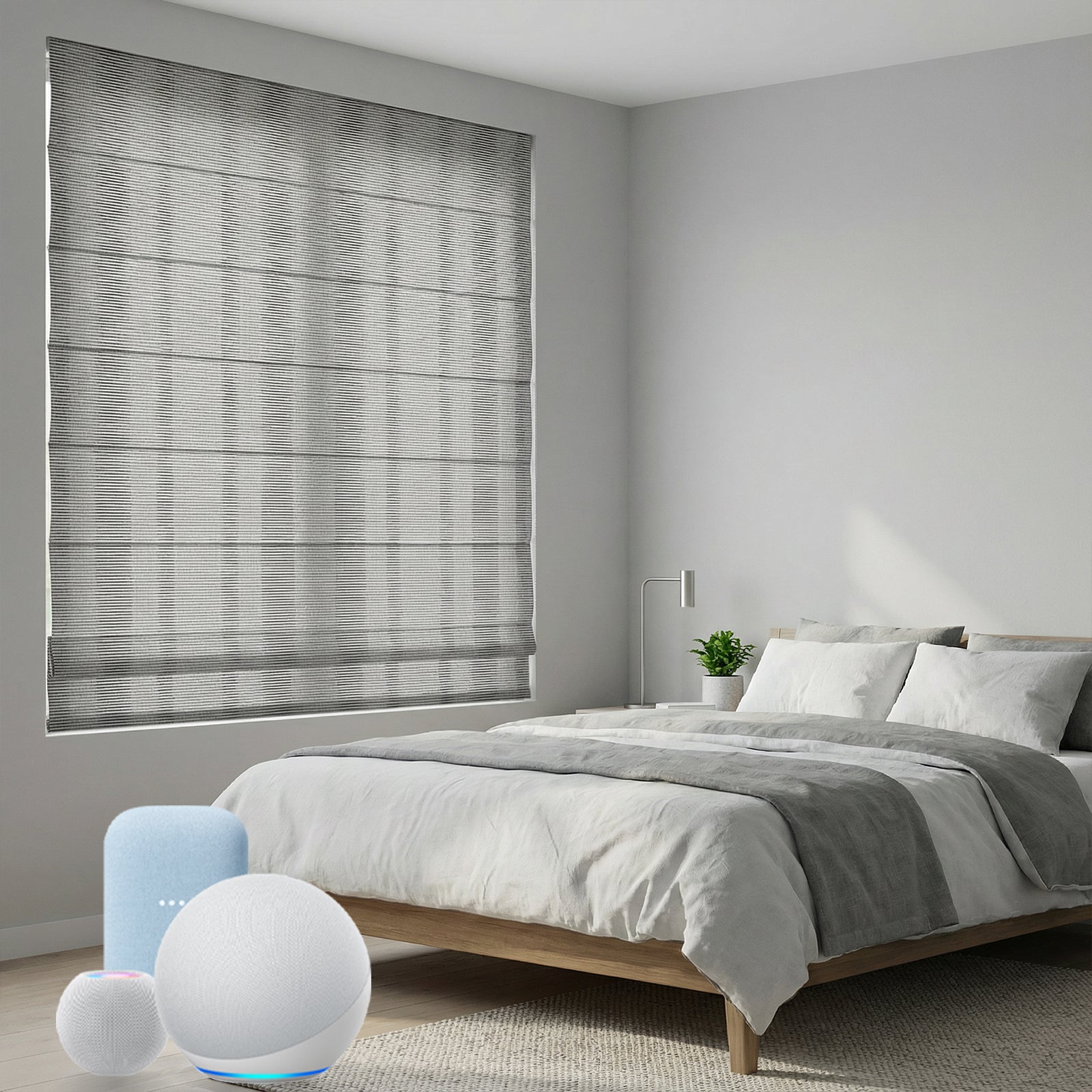 Enjoy hands-free control of your shades throughout your home. Simply say “Hey Google/ Alexa/ Siri...” to open, close, or adjust your shades to the perfect level, making your home more comfortable and convenient.
