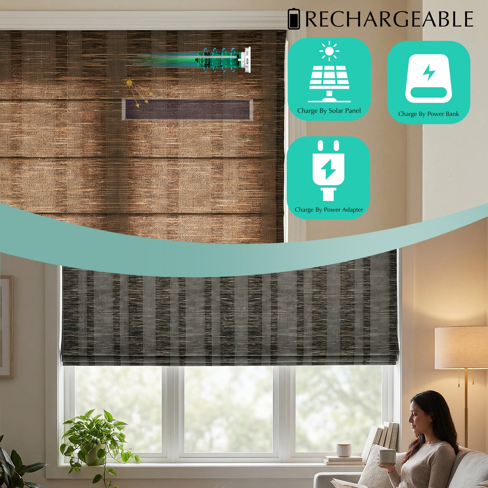 Our blinds have a built-in rechargeable battery, which means there are no cords or external power sources needed. A single charge can power the blinds for up to 600 cycles, or around 6 months, depending on how often they are used. For an even more sustainable power source, you can add a solar panel charging kit. Our cutting-edge technology will elevate your home while aligning with your values.