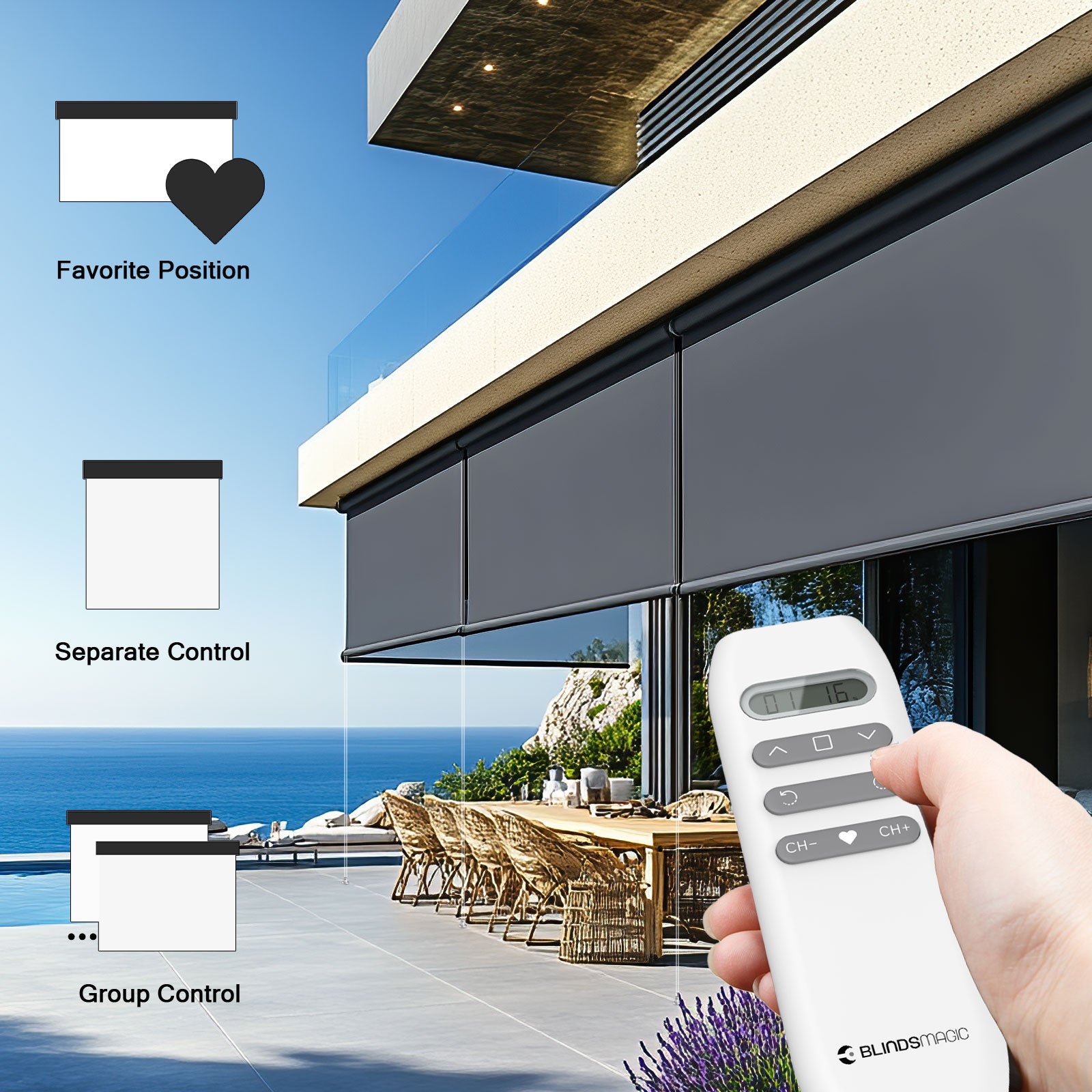 BlindsMagic Smart Motorized Sunscreen Outdoor Shades